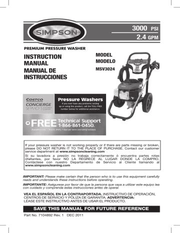 Simpson Msv3024 Manual. Web related manuals for simpson msv3024 pressure washer simpson msv2600 operator's manual 40 pages 2600/3000 psi 2.3/2.5 gpm pressure washer Web simpson msv3024 pressure washer: