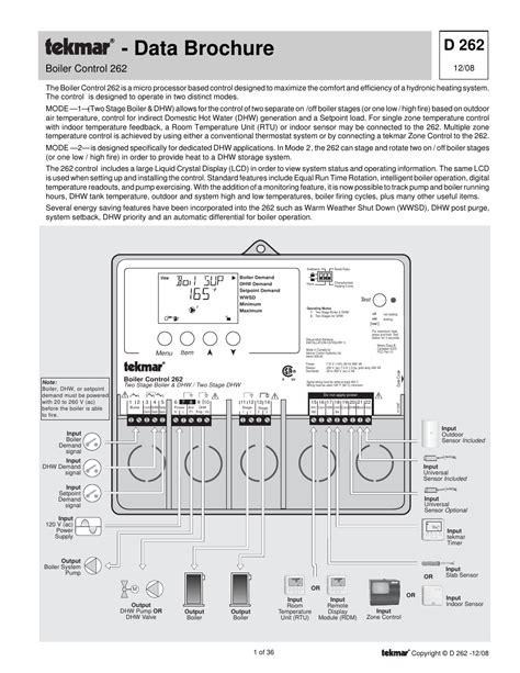 Web read online or download pdf • page 32 / 36 • tekmar 262 boiler control installation user manual • tekmar sensors. The boiler control 262 is a micro processor based control designed to maximize the comfort and efficiency of a hydronic heating system. The control is designed to operate in two distinct modes.